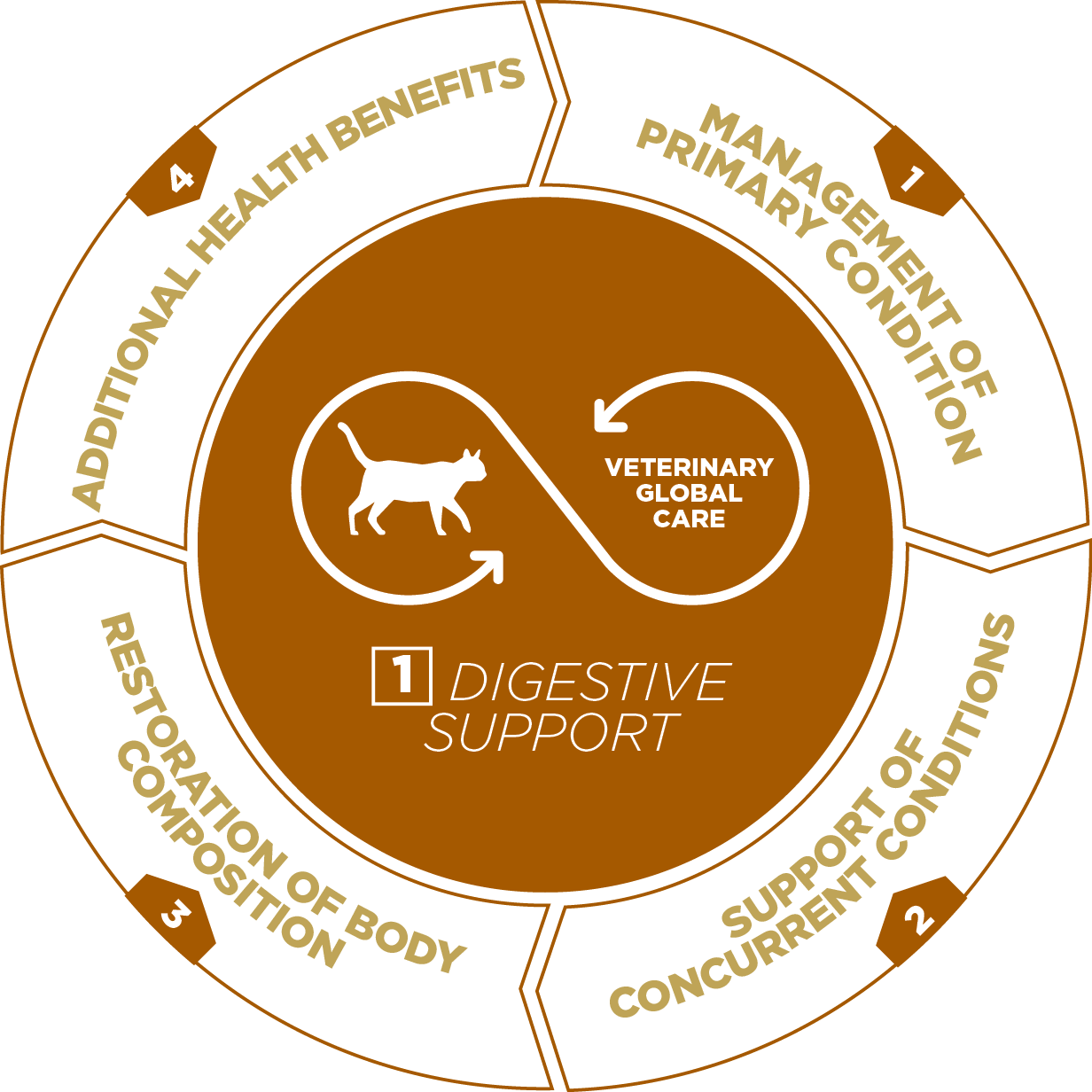 Addition of specific ingredients (clay, probiotics, prebiotics, selected fibres, butyrate, nucleotides) helps to quickly secure the digestive function, improve the digestive tolerance and produce normal faeces.